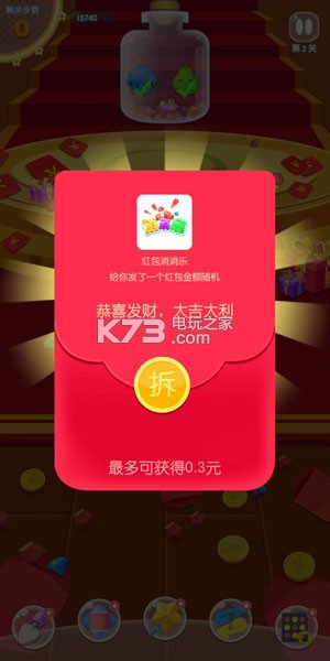 一款供玩家们休闲娱乐的手机游戏,关键是这款游戏是可以赚红包的,再也不是简单的消除而已,获得的分数越高,成就越好,就不愁赚不到红包哦。