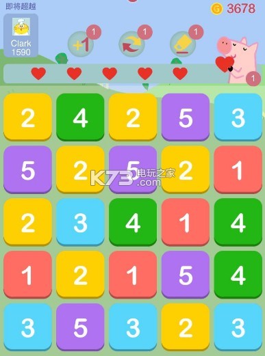 一款考验智力还可以赢取金币的消除游戏,通过切换位置消除相同的数字,考验眼力和智慧的掌上消除大赛。每种颜色代表一种数字,所以玩家可以根据颜色快速区分方块进行消除,这样就不会看得眼睛疼啦。