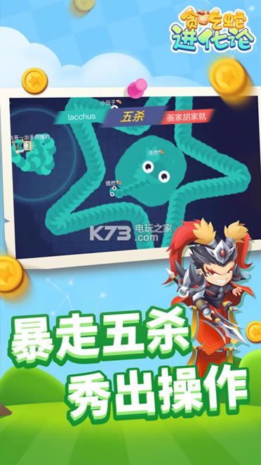 贪吃蛇进化论红包版是一款操作轻松休闲又不失紧张刺激乐趣的贪吃蛇类IO竞技对战游戏,你要做的就是操控你的小说风骚走位,尽可能吃到地图上所有的金币,这样你的身形就会不断的变长,你就可以去吃掉体型比你小的小蛇,同时全新融入合成玩法,让你永远不知道你下一步会合成什么样的蛇。