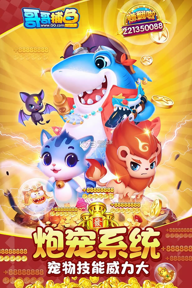 千炮只是起步,万炮不是终点!捕鱼玩法大升级!全网独创炮灵系统,给您的炮台加农炮!酷炫特效,万倍收益让您一炮亿金发大财!