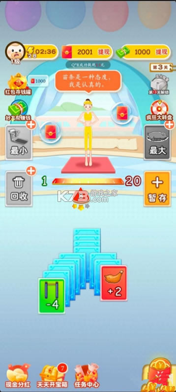 3、开心健康的减肥让主角变得苗条,收获惊喜奖励一边游戏一边赚红包