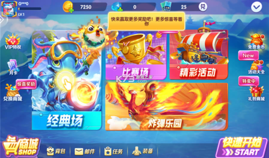 4.免费福利领到手软,深海寻宝集奖券,海量话费等你拿,不花钱也能嗨翻渔场。