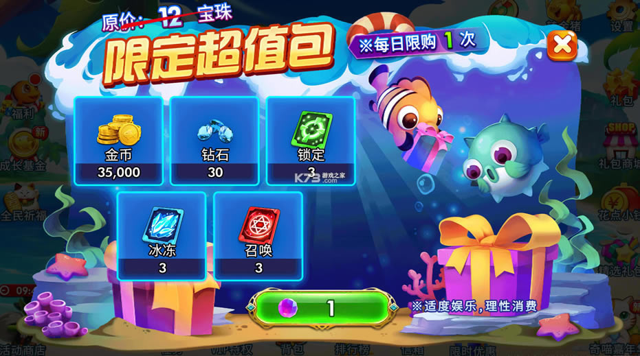 场景斑斓多彩,鱼群生动活泼,数种强力技能,称霸海底渔场