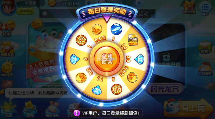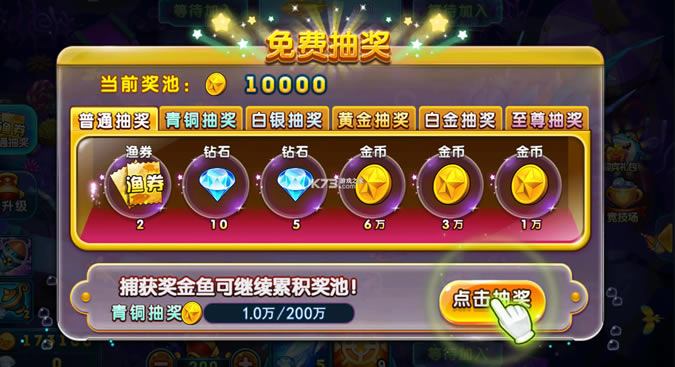 《波克捕鱼》备受喜爱的捕鱼游戏,每日登录领奖励抽奖,包含了丰富的经典模式和时光龙穴以及竞技场模式,领取vip的特权和特惠礼包,商城特惠,充值最低折扣领取丰富的礼品,七日豪礼天天登录吧。