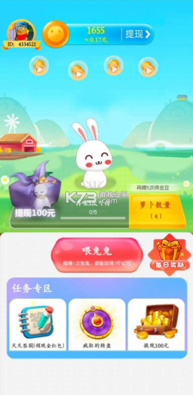 4、真正可以赚钱的游戏,超级多萌萌哒兔子来啦,它们肚子饿了,赶紧喂食吧