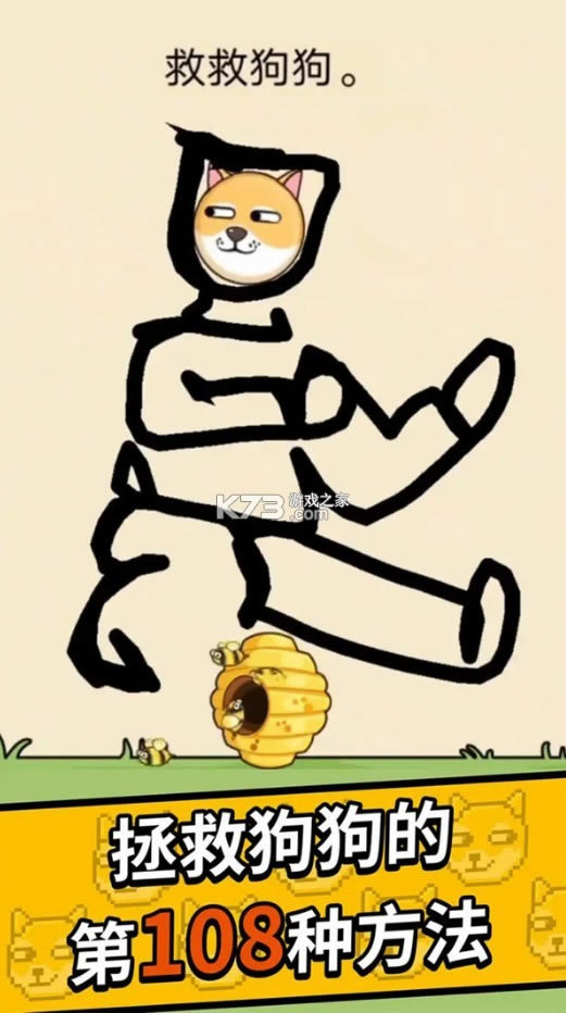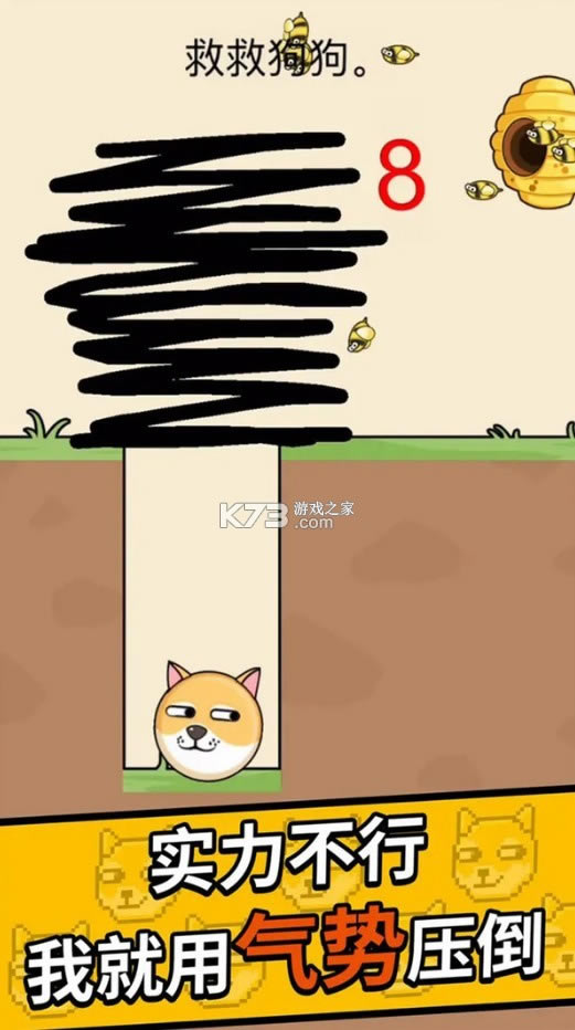 救救狗狗吧,只要画上一条线就能抵御蜜蜂攻击!一个玩起来超级魔性的烧脑闯关类型的游戏,去关卡里面手绘一些线条出来保护一个魔性的狗头不被伤害到,每一个关卡里面这个狗头面临的危险都是不一样的,因此对于玩家的脑力思维就有着很大的考验了,观察关卡的挑战内容然后画出合适的线条。