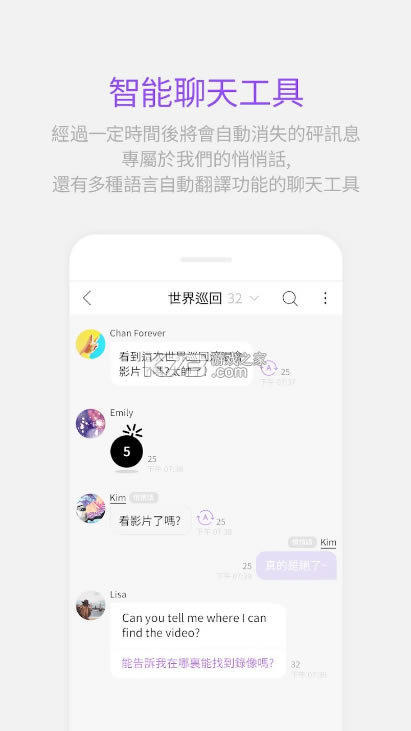 该聊天工具可以自动翻译成多国语言,只要有相同兴趣,就能结交全世界的朋友
