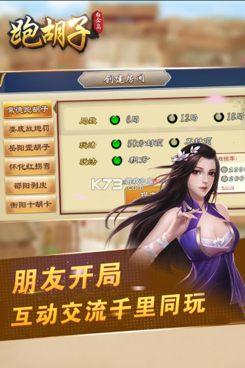 跑胡子合集是一款非常好玩的手机字牌游戏,内含丰富的字牌游戏种类,包括字牌、碰胡子、扯胡子、歪胡子、告胡子、红拐弯等等,全新社交体系,和牌友连线,随时开局迎战!迄今为止,市面上玩法最全,界面最美,体验最佳的跑胡子游戏大全,独特的双王扯胡子,地道的全名堂跑胡 子,红拐弯,八一,字牌。跑胡子字牌合集可玩性远超 黄金岛、波克、途游、赖子山庄、白金岛、JJ、博雅、同城游、老K 等,斗地主玩法,比麻将玩法更刺 激我们后续将陆续推出其他地方玩法,敬请期待。
