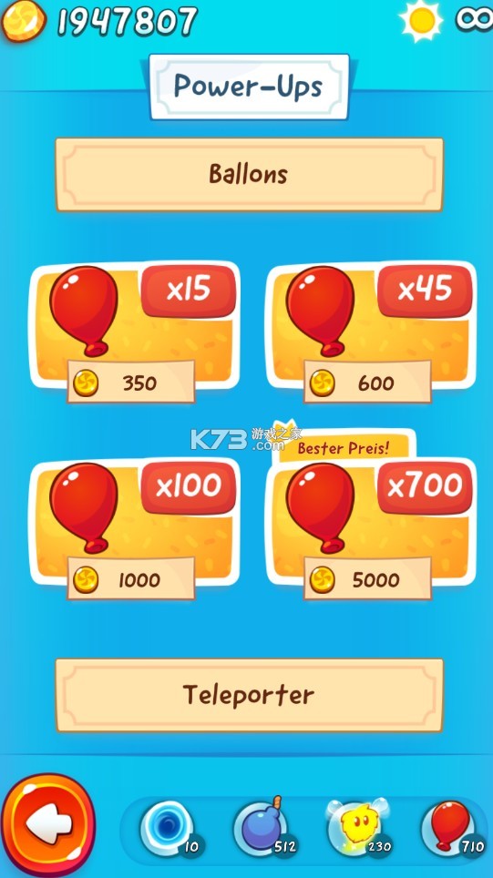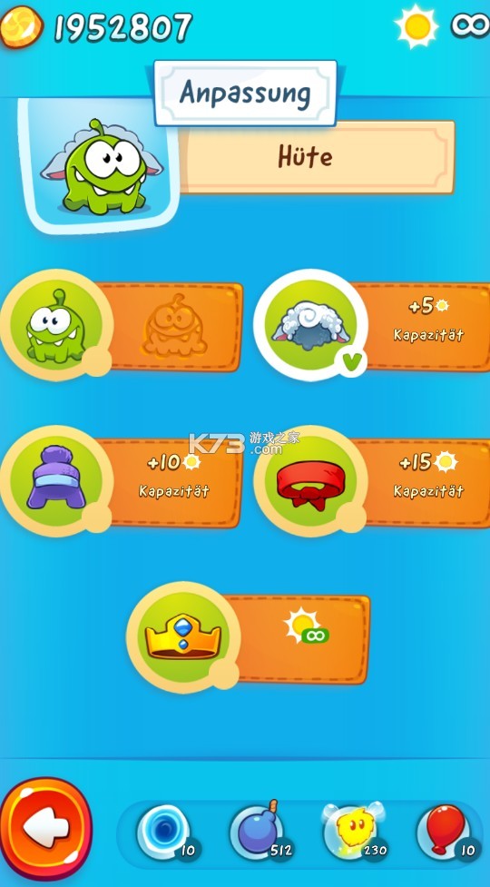 一款非常好玩的休闲益智游戏。这款游戏采用卡通的画风,里面的背景音乐也很活泼,给玩家带来了非常轻松愉快的玩法体验。这个版本里面还加入了五位爆萌的小伙伴哦,它们会帮助玩家度过难关,利用它们的能力,完成小吃货的糖果梦吧。游戏里面的还是延续了经典的收集星星的玩法,当然也能收集四叶草开启隐藏关卡。游戏的玩法也非常的轻松,操作也非常的简单,只需采用触屏操作,轻轻划断绳子,然后在合适的时机控制好好伙伴或是道具即可轻松过关。游戏里面的关卡也非常的丰富,还有全兴的水果超市地图强势加入,还有海量的可爱装备能随心装扮,给用户带来全新的玩法体验。