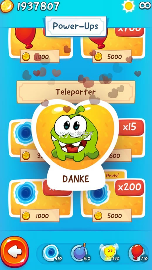 这款游戏采用卡通的画风,里面的背景音乐也很活泼,给玩家带来了非常轻松愉快的玩法体验,这个版本里面还加入了五位爆萌的小伙伴哦,它们会帮助玩家度过难关,利用它们的能力,完成小吃货的糖果梦吧,游戏里面的还是延续了经典的收集星星的玩法,当然也能收集四叶草开启隐藏关卡,游戏的玩法也非常的轻松,操作也非常的简单,只需采用触屏操作,轻轻划断绳子,然后在合适的时机控制好好伙伴或是道具即可轻松过关。