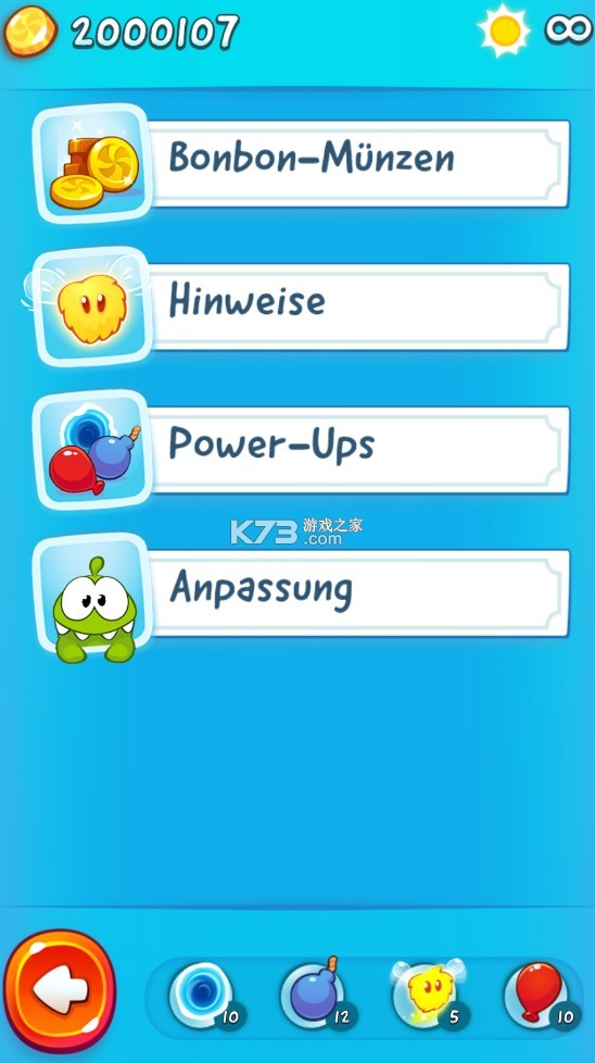 《割绳子2破解版无限金币钻石版》在画面上基本保留了前作的卡通风格。玩家在游戏过程中仍然可以直观看到清新亮丽的场景画面,没有浓墨重彩、没有非常突兀的违和、依然色彩丰富却又十分简约!不过在割绳子2里,明显可以感觉到暖色调的作用被放大了,看上去画面更亮、让人觉着更暖意融融!除了良好的整体视觉效果外,游戏加入的动态效果也让人眼前一亮!闪亮的星星、浮动的碧蓝海水、当然还有我们的小主角Om Nom,你别妄想它会在某个角落安份地待着,因为这个吃货时不时就会张开大嘴巴暗示你需要吃东西!虽然这家伙看上去十分傲娇,不过不少人还是会由于它的呆萌造型而忍俊不禁,当然还有那些各自拥有搞怪夸张造型的小伙伴们!从这一切看来设计者就是想制造一个轻松愉悦的游戏氛围,从而让玩家能尽情享受益智游戏带来的乐趣!