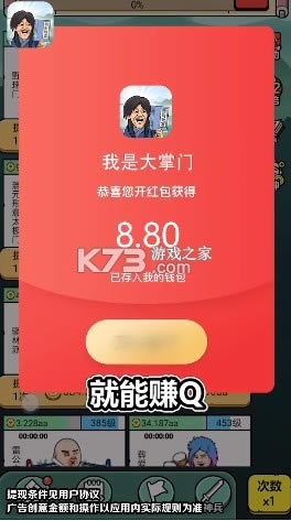 《我是大掌门》通过招收各大武林门派来赚钱了,能够获取更多的门派,发展你的武林大会,最终来统一武林吧。让更多的武林门派来帮你赚钱了,手游里面可以获取更多红包了。