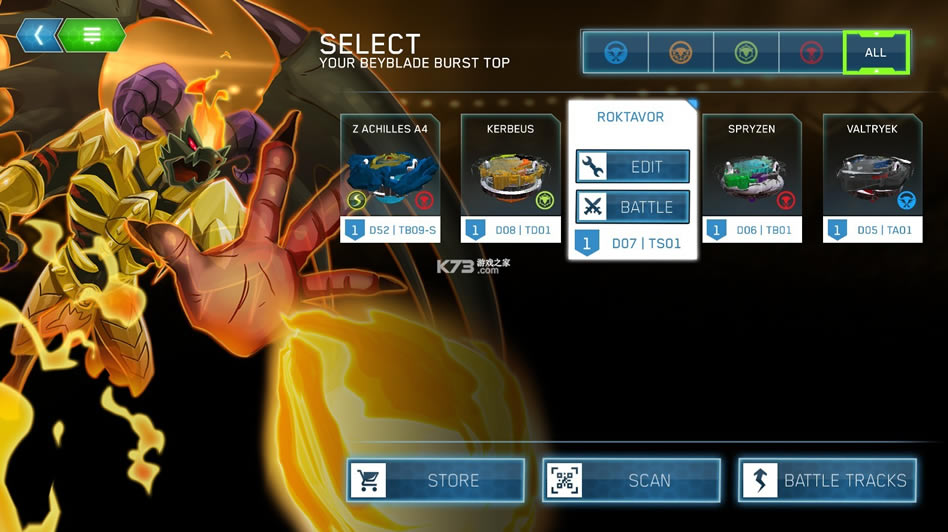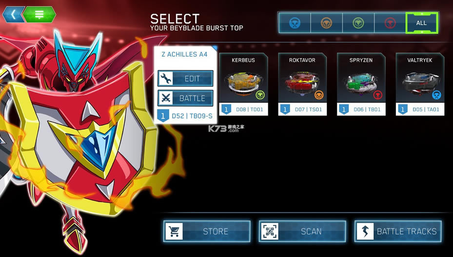 游戏一共为玩家们提供了四种类型的陀螺,分别是攻击型、持久型、防御型、平衡型