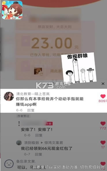 来玩红包群app这里有特别的答题闯关玩法,基本模式很简单,慢慢去进行就有收获,等待时间比较多,用心去面对就好,这样的机会确实难得,注意好就有红包得到,开奖的时间不固定,反正都能提现到你账号里面。