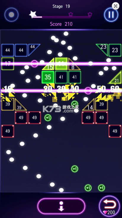 滑动你的手指,战略性思考,根据瞄准线去发射小球将方块击碎
