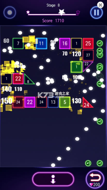 想要获得高分,必须在方块们落到底部之前,尽可能都击碎它们