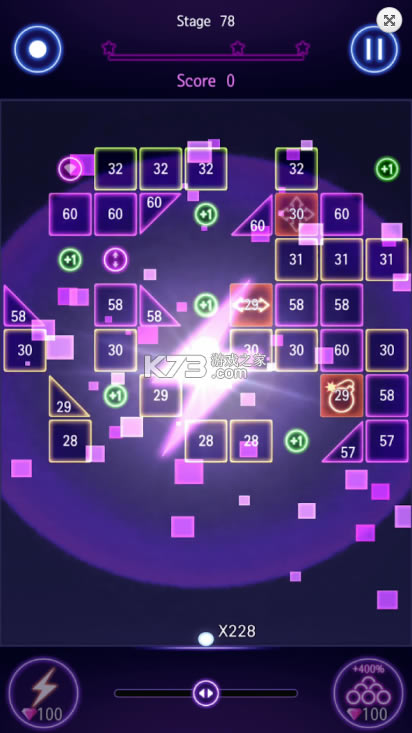 砖块破坏神游戏通过反复敲击砖块获得胜利,通过连击程度来获得高分。用一个小炮口向天下的砖块打出去,你将会感受到非常棒的解压感受,球球还可以反弹,玩家就必须的用独特的角度射出去,