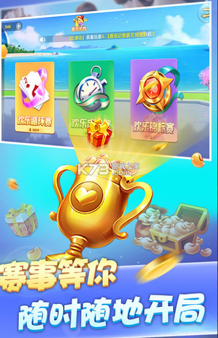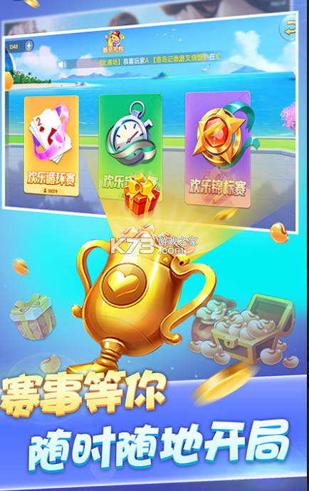 以组织“比赛”的方式进行棋牌游戏,取代了通常的“散桌”组织形式,让在线棋牌更具专业、竞技特色。以纯绿色竞技比赛玩法为理念,凭借棋牌竞技专业化、比赛形式多样化、比赛时时有、大奖天天拿的优势,为用户提供了专业、刺激、有趣的竞技体验。