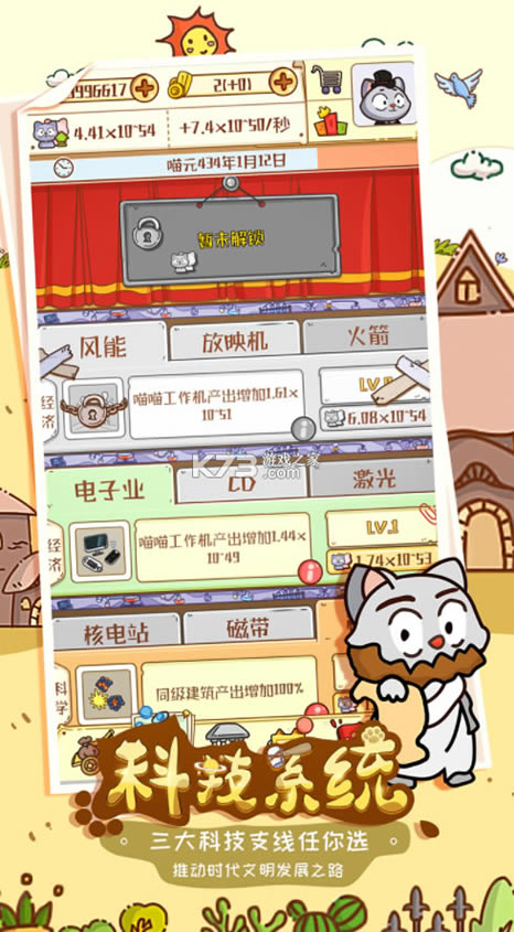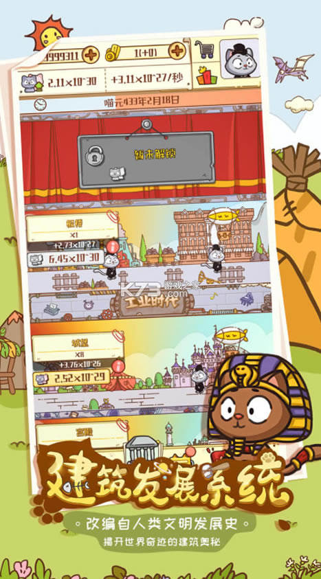 从原始时代一路走来,喵星人历经农业时代、工业时代、信息时代等,从刀耕火种到宇宙飞船,最后喵星人是会成功成为宇宙的霸主还是停滞不前被时代抛弃,这都要靠你的努力来决定!