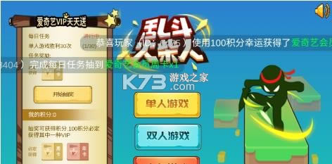 《乱斗火柴人赚积分版》这是一款以火柴人为游戏的主要玩法的一款休闲趣味性的游戏,在游戏中进行玩游戏就可以赚取积分,获得一定的积分就可以进行兑换爱奇艺的一个会员,爱奇艺的周卡年卡都将有机会获得,想看剧的玩家千万不要错过。