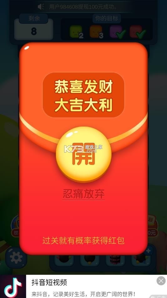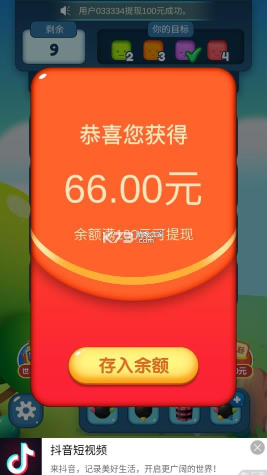 《moneasy开心点点消》这是一款采用的是可爱风的一款去性的消除赚钱小游戏,新人进行下载玩游戏就可以是送66元红包奖励,里面超多的关卡进行设置,玩消除游戏非常的解压愉悦,在玩游戏的同时还可以轻松进行一键消除,超多的关卡设置,让你轻松的赢红包。