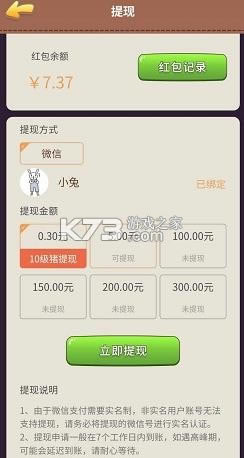 下载APP,微信登录。玩到10级,然后提现0.3元