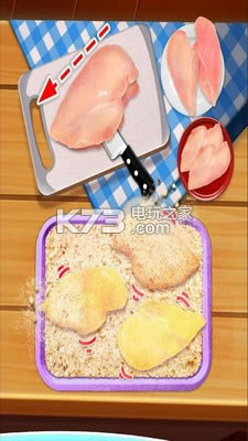 1、玩家可以拿起刀将鸡肉切成片,然后给它进行下一步的操作。