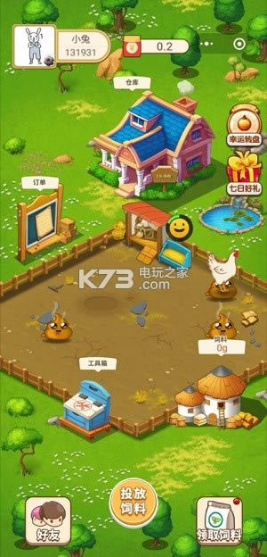 4.反正就是领取饲料,投放饲料,等吃完下蛋,这鸡吃的比较慢,可以点那个“笑脸”加速,不过一天只能用一次。