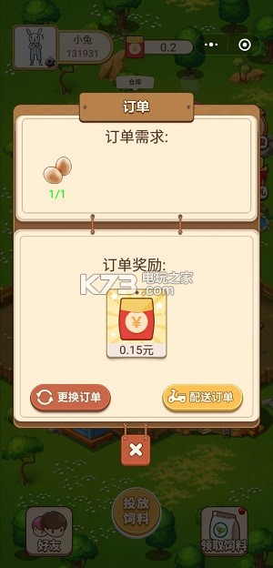 7.找不到规则介绍,不确定喂多少饲料产一个蛋,反正有饲料喂它就行了,也不用花费什么时间玩,下蛋了去换钱,满0.3元提现秒到微信零钱!
