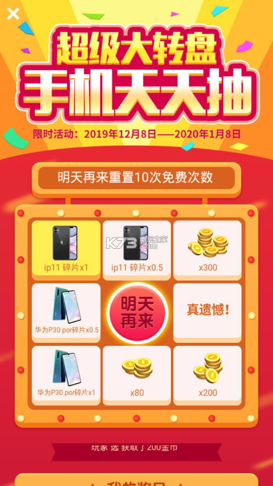 3、集齐10个iphone11或者10个华为p30pro碎片,即可兑换实物奖品(集齐后点击兑换手机,正确填写联系方式后,客服人员将在5个工作日内审核并与您联