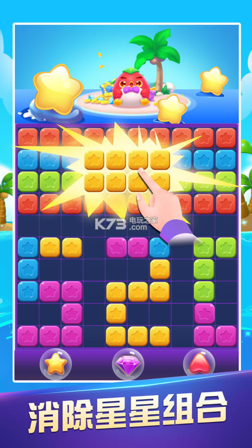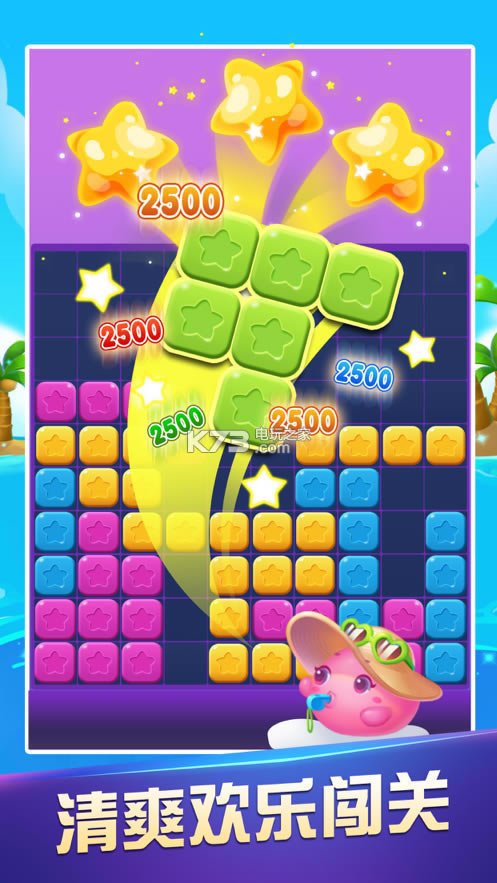 1、欢乐的消星星游戏,趣味的闯关玩法,相同颜色的方块可以直接进行消除得分;