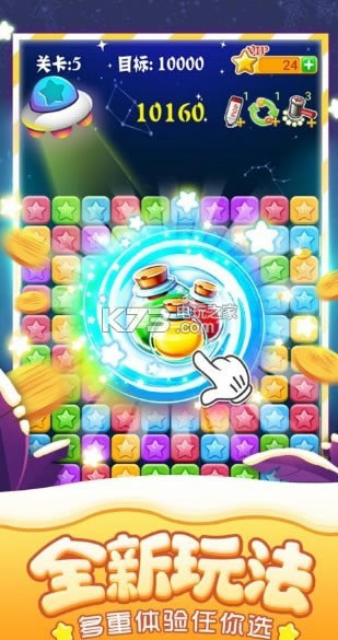 一款完美融合了多种消除效果的趣味休闲游戏,滑动手指就能轻松完成所有的消除任务,非常考验你的极限脑力,将连续三个以上的星星消除就能得到奖励,有时候可以使用道具来帮助你,每次消除的时间是有限的,积累红包就能兑换超级大奖,多种福利等你来体验哦。