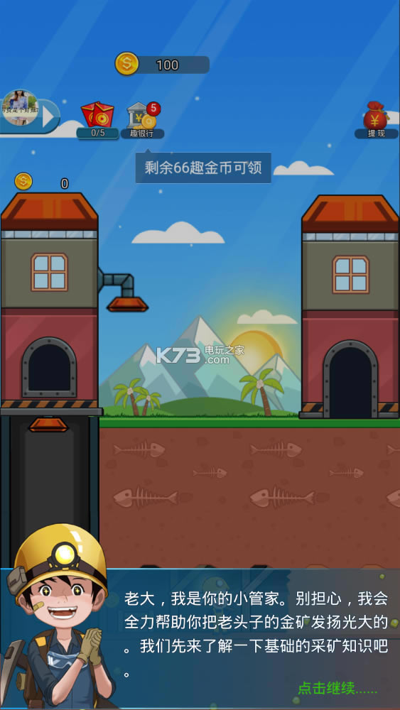拥有自己的矿产,按照自己的方式管理自己的生意:挖金矿,淘钻石,开采各种矿石,管理各种技能的矿工,升级矿场,挖穿地球,探索世界,收集地下宝藏,买岛建楼爽到爆!淘金就要做大亨,别再甘心做矿工!