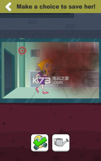 救救那个女孩是一款非常有趣的休闲类冒险闯关型手机游戏,这款游戏需要玩家仔细观察游戏场景内将会出现的危险提前给女孩准备好对应的物品帮助她渡过难关。在游戏进行前系统会让玩家在给出的几种道具中选择一个做为应对困难的道具,你可别乱给,不然就麻烦了!