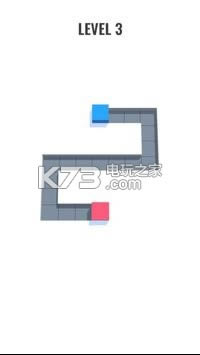 《Duo Maze》游戏关卡众多,玩法十分的令人上瘾,在关卡内有着两个不同的立方体,它们将以相反的方向进行移动,你需要来合理的控制着它们进行移动,使得它们相遇。