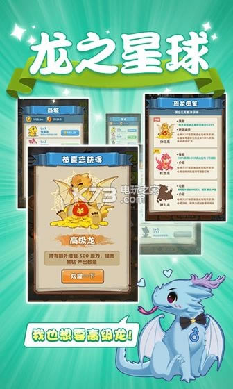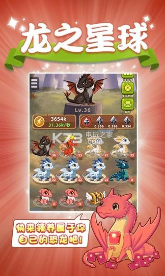 龙之星球》拥有Q萌造型和表情的各种恐龙,在这龙之星球中玩家要不断的合成创造更多的新恐龙,不断的解锁稀有龙种,把所有的龙全部解锁,各种Q萌的表情带给你更多欢乐。