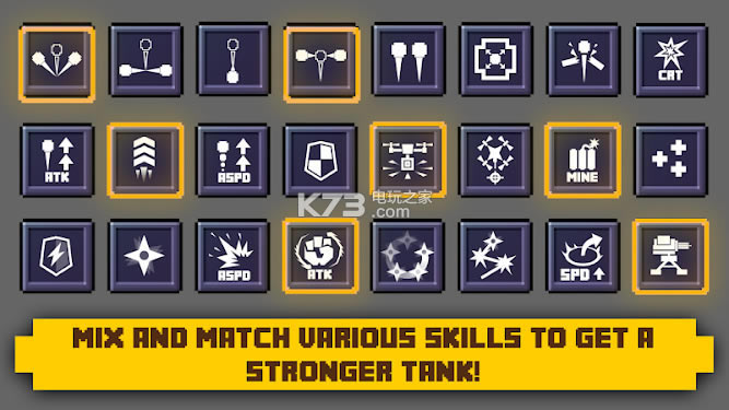 - 使用击杀每波敌人后获得的各种技能来升级坦克。
