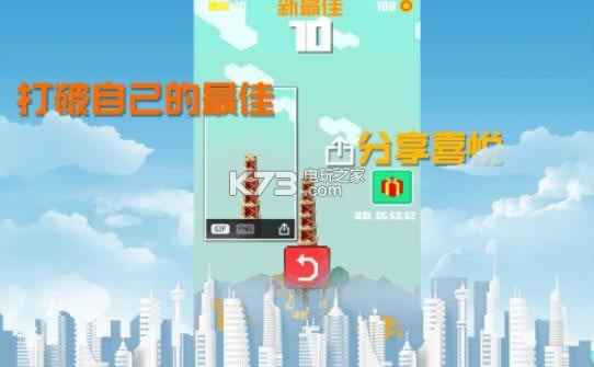 《建造大楼100层》游戏小心翼翼的来搭建,成为最出色的建筑师,选择你的建筑开启建造,点击礼包来获取,分享给你的好友们,男女老少都可以来参与挑战,魔性的玩法,记录和快速的来分享。