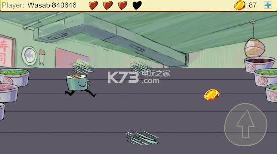 3、滑动即可更改跑道,跳跃以躲避障碍物并为您的生活而奔跑!收集硬币和各种道具,升级可爱的寿司服装,解锁新角色,看看可以慢跑多远!
