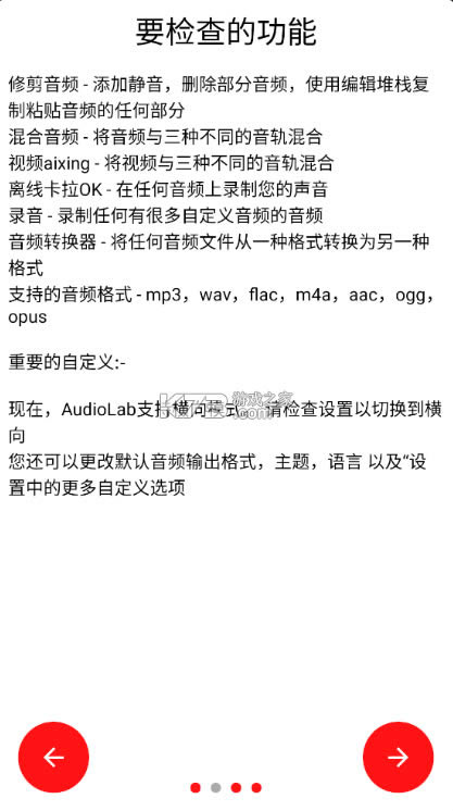 AudioLab是一款非常专业实用的音频编辑软件,这款软件包含了所有的音频编辑功能,几乎可以比肩PC上面音频剪辑软件,比如其中包含了设备编解码器、音效效果、变音、变速、变调、录制音频、批量处理、卡拉OK离线、语音转换器、剪裁音频等等各种功能非常的全面。而且,其中内置实时预览功能,让用户能监视修改的每个步骤,让你能轻松制作出最完美的作品。通过这款软件,用户能去除歌曲中不需要的片段,将余下的那些片段任意搭配组合成新的音频,这样就能轻松制作出自己的专属铃声。这款功能强大的现代化音频编辑软件完全可以满足用户手机上的所有音频编辑需求,此外,你还可以使用此软件消除噪音,完美解决用户的任何音频问题。