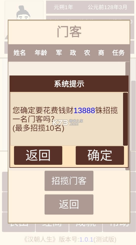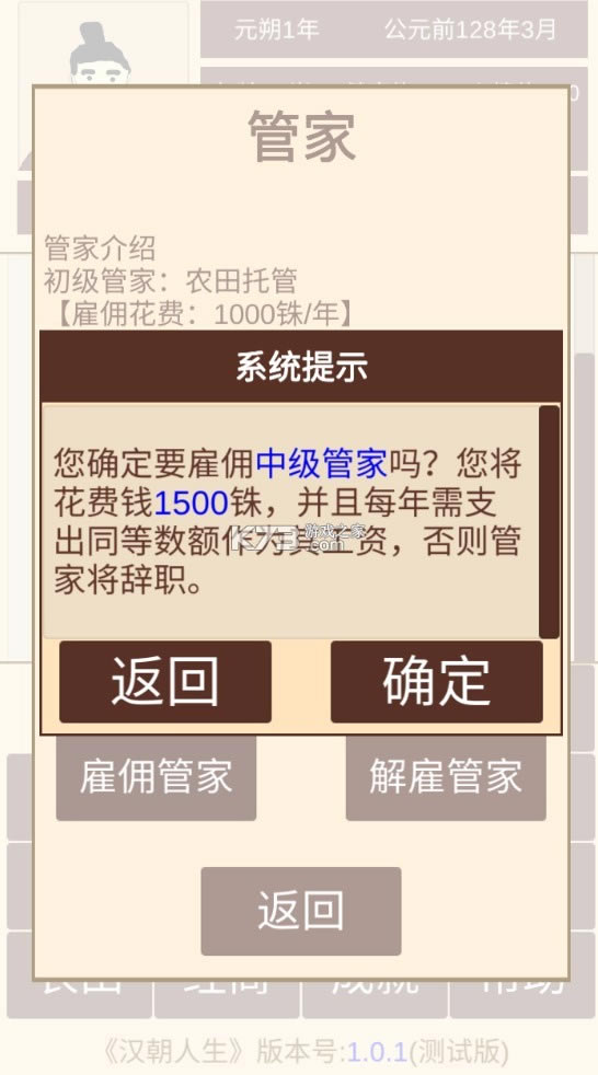 《汉朝人生》破解版提供了,无限金钱无限活动点提供给大家,并且还可以免广告直接体验游戏了,手游中将模拟趣味的汉朝的生活了,你可以从平民百姓开始,慢慢的进阶你的身份,完成更多的事务的处理吧。
