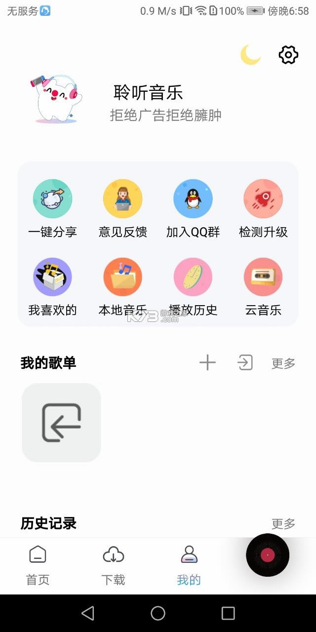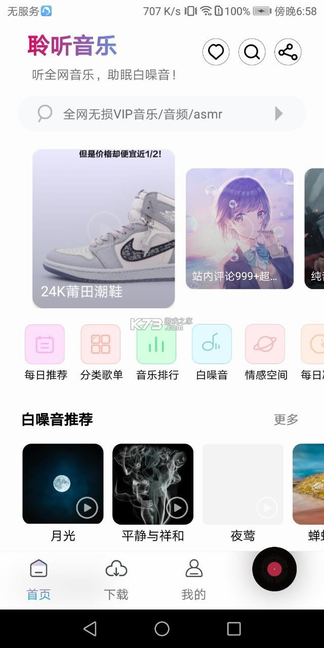 4.聆听音乐是一款音乐下载软件,丰富的歌曲乐库,简单的操作方式,让你更快得到你想要的歌。