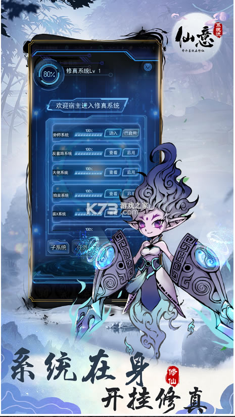 《仙意带个系统去修仙游戏》是一款文字类型的修仙游戏,这是一款放置类型的手游,游戏中拥有十分完整的修仙系统,在游戏里玩家可以感受到一个完整的修仙世界,感受这个世界的魅力,快来下载试试吧!