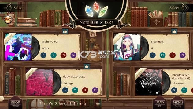 收集剧情相关的任务成就,向好友分享成绩结算画面,并在排行榜上与全世界音乐游戏好手竞争。游戏支持云端存档。