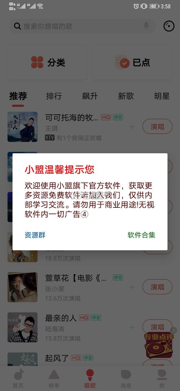《唱吧去广告纯净版》包含海量音视频,用户下载安装后,可以到app上进行k歌,还可以和好友一起pk,这里有海量的音乐内容,ktv玩法,冠军争霸等等都能让你一展歌喉,这个音乐是舞台就属于你自己。