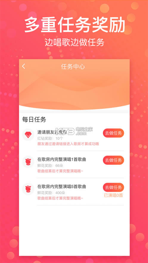 《呱呱》是新上线的中老年人上线k歌软件,提供各种好听的歌曲以及完善的k歌模式,红音app可以通过歌声为好友送上祝福,并且每唱一首歌都能获得一定的金币收益哦。