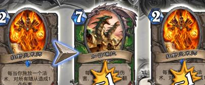 这套卡组的核心卡牌,无论是前期的解场,中期配合和尚的刷牌,还是后期配合九头蛇的进攻,它都是战术的发动机,卡组的灵魂。特别在更新后,1血小怪铺场的打法遍布天梯,炎术士+法术的地位更加巩固。