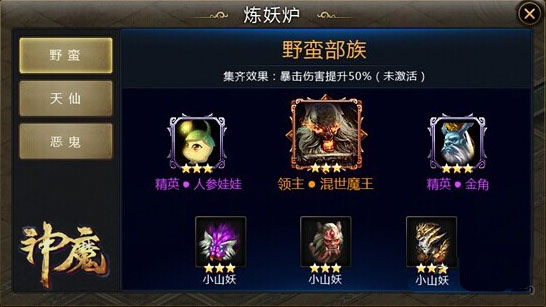 收集到的妖魔元魂,可使用“炼妖炉”加以炼制,提升元魂品质,凑齐三界中任意一套妖魔元魂,除了能满足你的收集情迷,还能激活元魂内的隐藏属性,称霸三界,成为六道霸主。