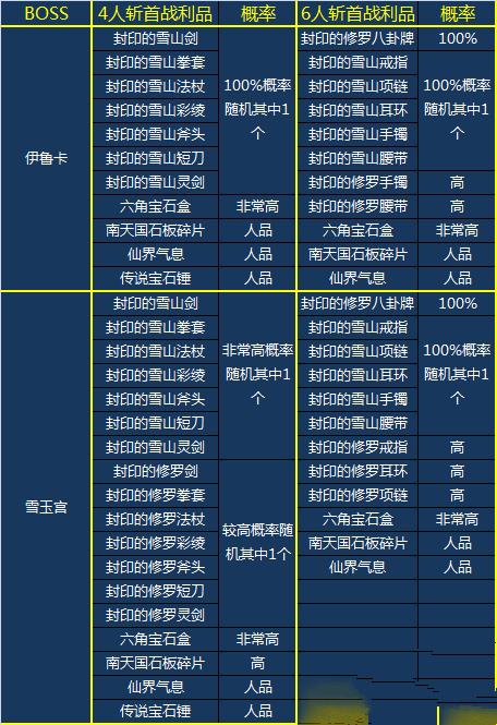 《剑灵》快速获得物品 雪玉宫副本怪物掉落几率汇总