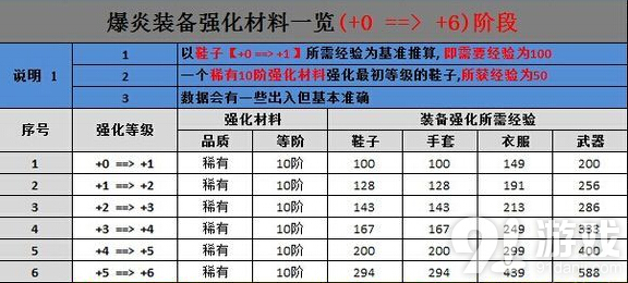 暴炎装备强化材料一览(+0 ==> +6)阶段